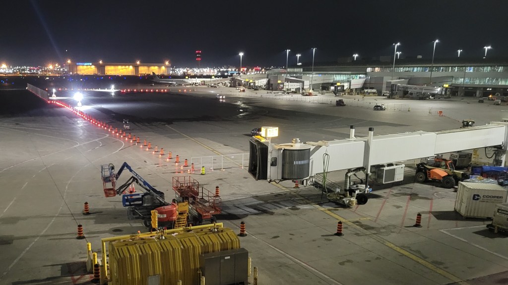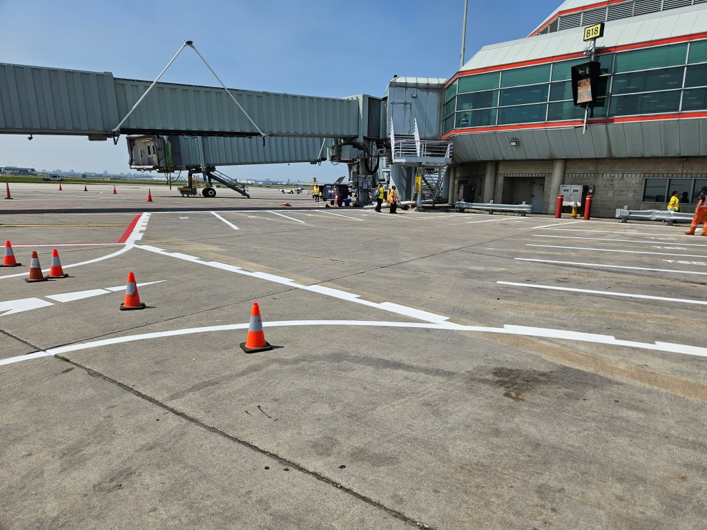 Significant portions of apron space were periodically unavailable due to ongoing construction activities. To mitigate operational impacts, a series of phased stand reconfigurations and temporary taxilane layouts were developed. These included jet-blast analysis, and where warranted, the use of mobile jet-blast fencing to protect workers.